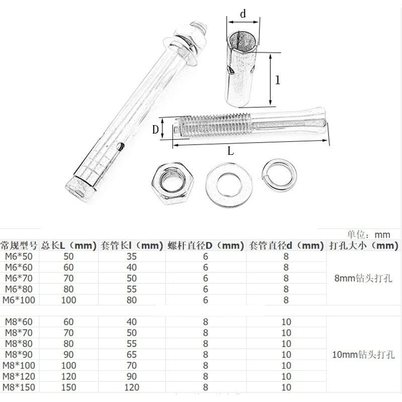 Material:316 Stainless SteelType:Concrete AnchorsPack Quantity:1/2/5/10 pcsDue to lighting and display reasons,the product may have color difference.